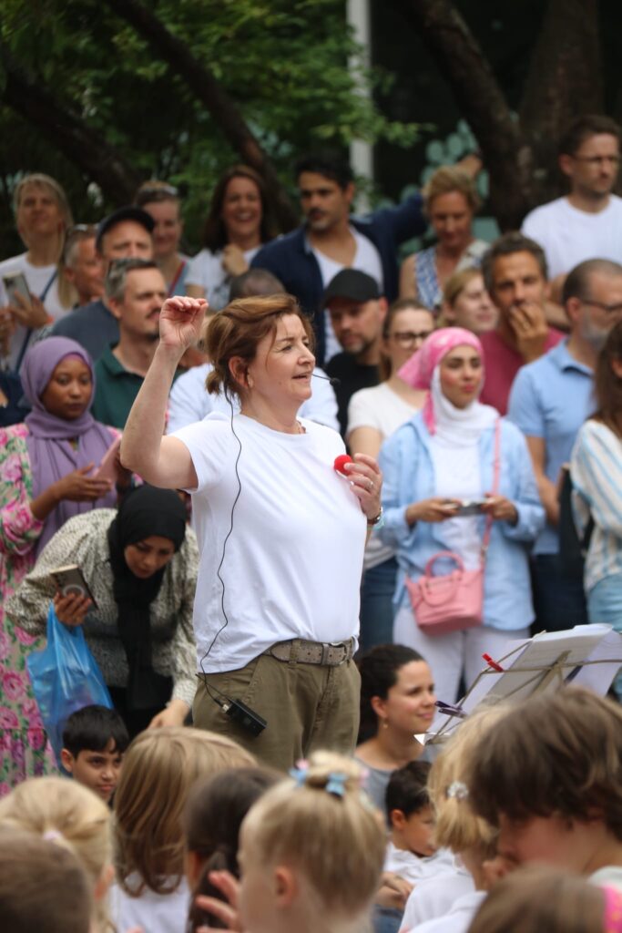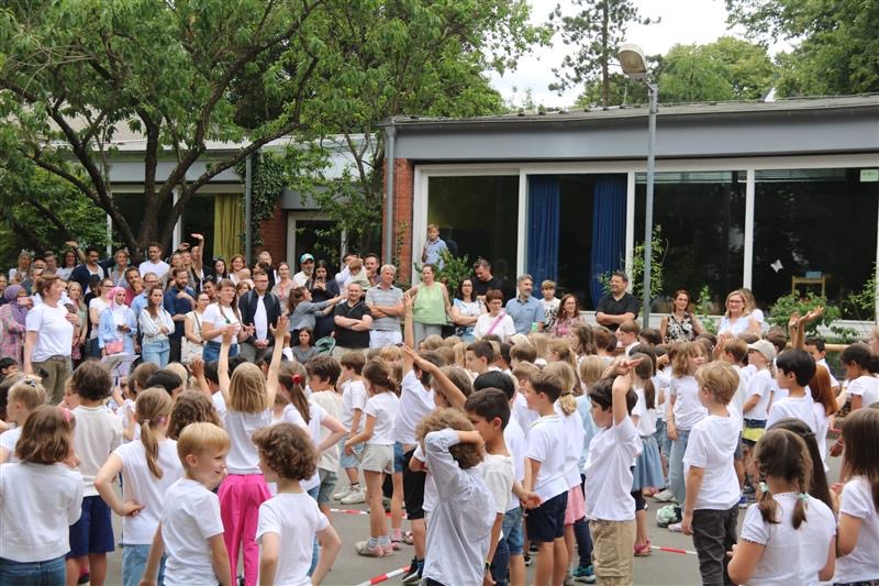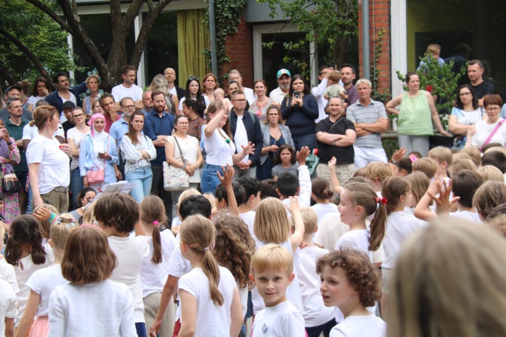 Das Konzert war eine musikalische Reise durch verschiedene Länder, Sprachen und Kulturen. Mit viel Begeisterung und Freude führten die Kinder ihr Publikum durch dieses bunte Programm. Auch unsere Schulband hatte in diesem Rahmen ihren ersten ganz großen Auftritt. Am Ende durfte natürlich auch eine Zugabe nicht fehlen – vom Publikum lautstark gefordert und begeistert gefeiert.