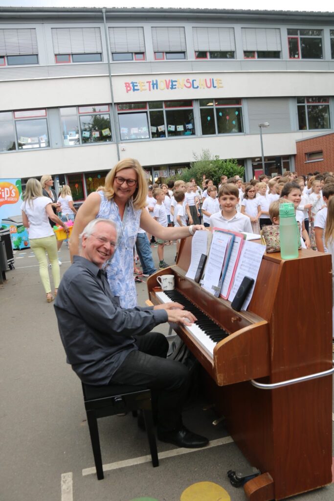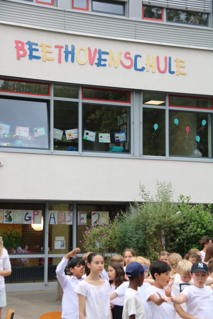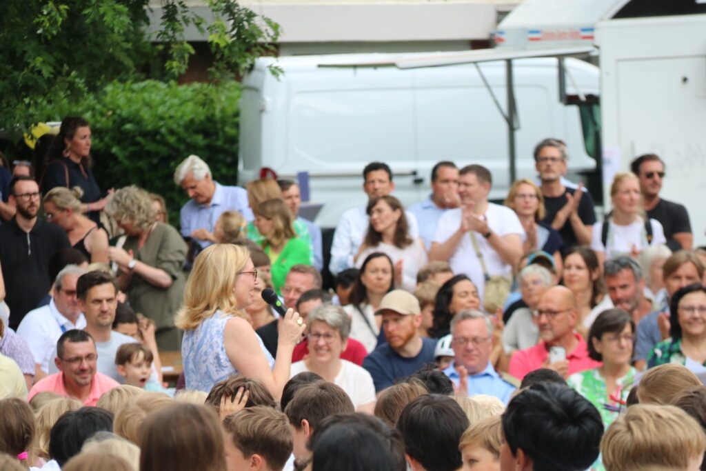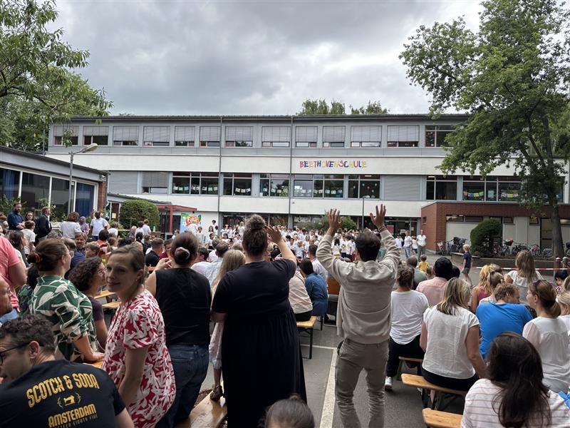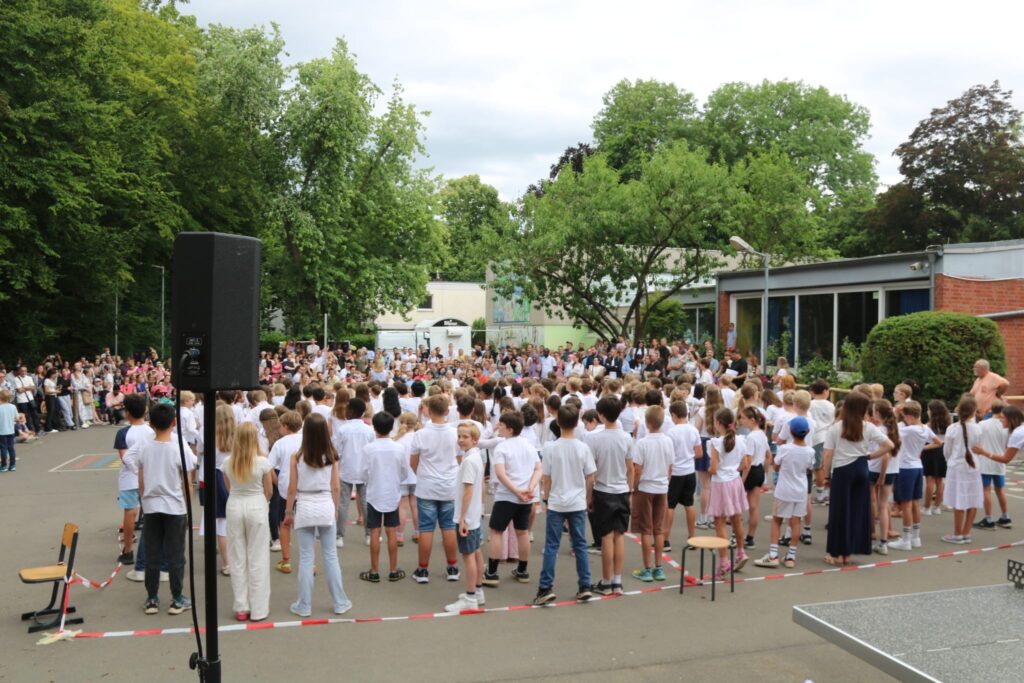 Nach dem Konzert gab es noch ein gemütliches Beisammensein, das die Eltern, organsiert von unseren engagierten Schulpflegschaftsvorsitzenden, Herrn Kruse und Frau Biedrzycka-Schmidberger, liebevoll vorbereitet hatten: Bei herrlich sommerlichem Wetter wurden Würstchen gegrillt, leckere Speisen geteilt und kühle Getränke genossen. Für die Kinder gab es als süße Belohnung ein Eis – ein gelungener Abschluss für alle.