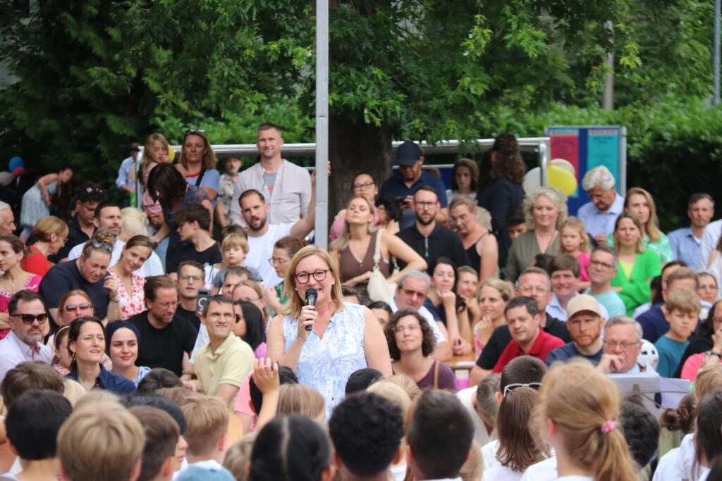 Unter der engagierten Leitung von Frau Wagner hatten unsere Schülerinnen und Schüler insgesamt 13 Lieder einstudiert, die sie mit großer Freude und beeindruckender Konzentration präsentierten. Dabei sangen alle Kinder die Lieder auswendig – eine tolle Leistung, die nicht nur die Eltern, sondern auch Freunde, Nachbarn, Sponsoren und weitere Gäste zum Staunen brachte.