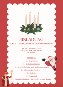 In der Adventszeit wurde es in der Beethovenschule besonders festlich: An vier Adventsmontagen kamen alle Kinder und Lehrkräfte im Foyer zusammen, um gemeinsam die Vorweihnachtszeit zu feiern. Der große Weihnachtsbaum und der leuchtende Adventskranz bildeten dabei den Mittelpunkt der Feiern…